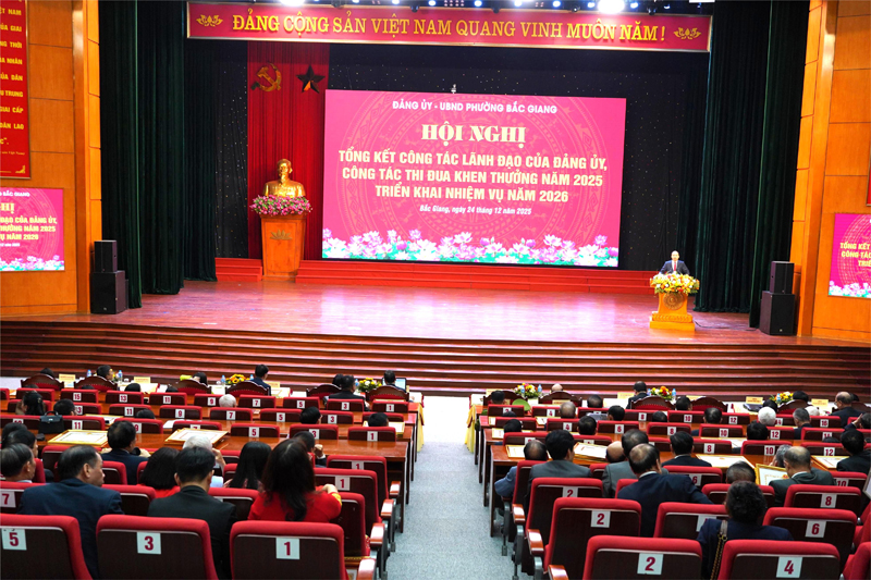 Chiều 24/12, tại Hội trường Trung tâm Hội nghị tỉnh, Đảng ủy- UBND phường Bắc Giang tổ chức Hội nghị tổng kết công tác lãnh đạo của Đảng ủy, công tác thi đua khen thưởng năm 2025; triển khai nhiệm vụ năm 2026.