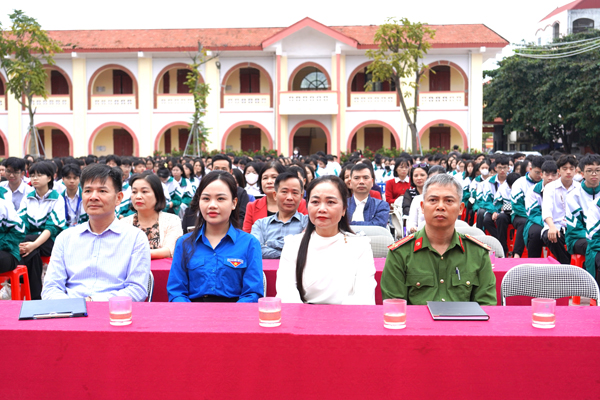Dự chương trình có các đồng chí: Nguyễn Thị Hồng Vinh – UV BTV Đảng ủy, Chủ tịch UB MTTQ phường; Hoàng Mỹ Linh – Bí thư Đoàn thanh niên phường; các đồng chí đại diện công an phường; Ban giám hiệu, các thầy cô giáo và hơn 1.000 học sinh của trường.