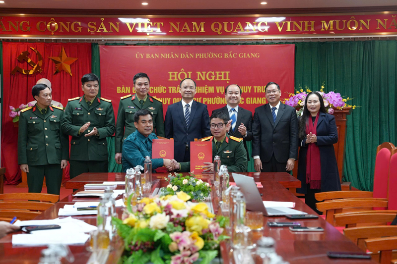 Hội nghị đã thực hiện bàn giao chức trách, nhiệm vụ Chỉ huy trưởng Ban CHQS phường cho đồng chí Thiếu tá Nguyễn Trung Đức, Chỉ huy trưởng Ban chỉ huy Quân sự phường Bắc Giang theo đúng quy định. Nội dung bàn giao trên các mặt công tác: Quân sự, quốc phòng địa phương; công tác tham mưu cho Đảng uỷ, UBND phường; công tác huấn luyện, sẵn sàng chiến đấu; xây dựng lực lượng dân quân, khu vực phòng thủ; hậu cần- kỹ thuật và các nhiệm vụ trọng tâm trong thời gian tới. Quá trình bàn giao được tiến hành chặt chẽ, đầy đủ, đúng nguyên tắc, bảo đảm sự lãnh đạo, chỉ đạo trong thực hiện nhiệm vụ quốc phòng, quân sự địa phương được liên tục, không gián đoạn.