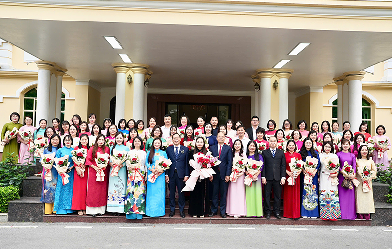 Lãnh đạo phường chụp ảnh lưu niệm với toàn thể cán bộ nữ phường
